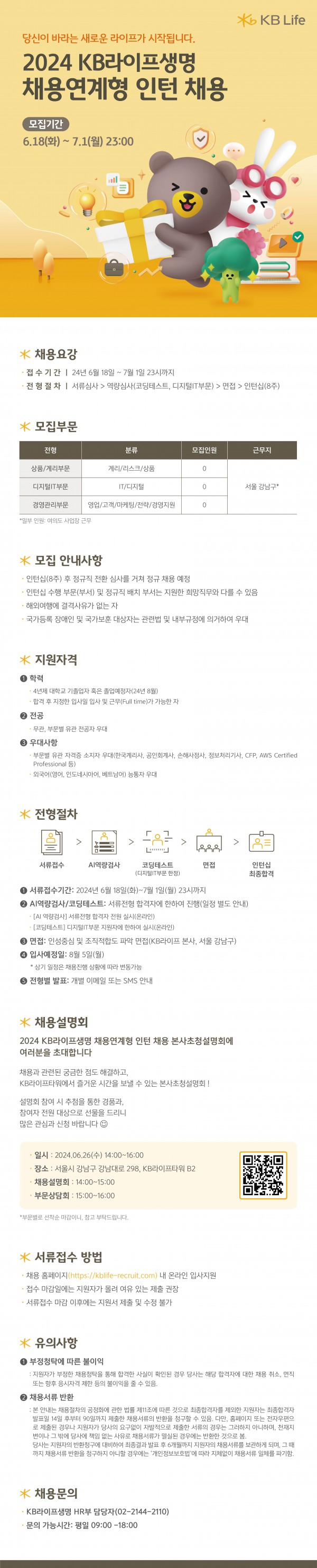 [채용] 2024 KB라이프생명 채용연계형 인턴 채용