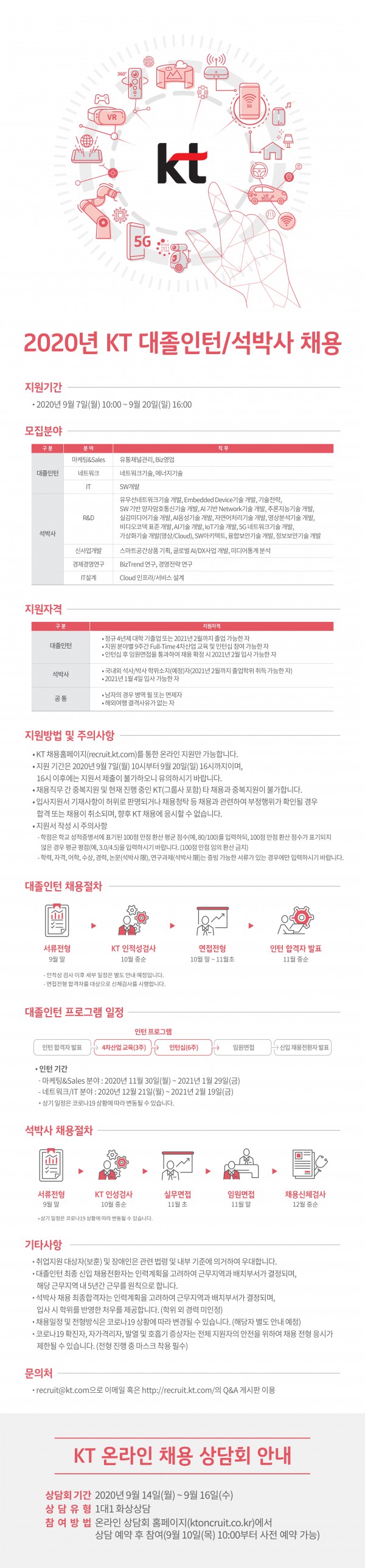 [채용]2020년 KT 대졸인턴/석박사 모집 페이지 정보 작성자 대학일자리센터 작성일20-09-09 17:08 조회12,132회 댓글0건 관련링크 이전글 다음글 목록 본문 댓글목록 등록된 댓글이 없습니다. 이전글 다음글 목록
