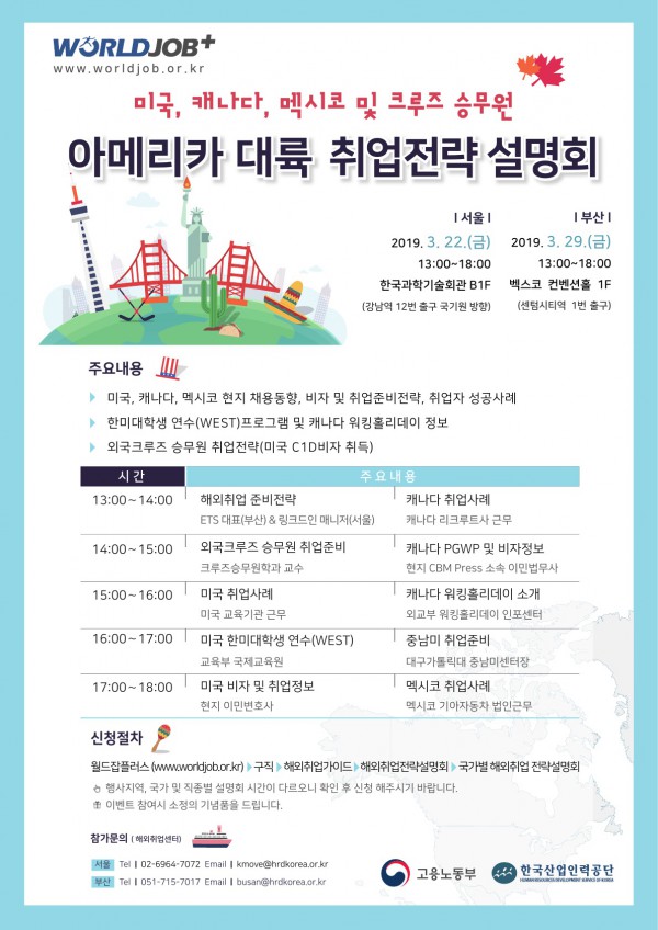아메리카 대륙(미국, 캐나다, 멕시코 및 크루즈 승무원)의 취업전략 설명회 개최를
