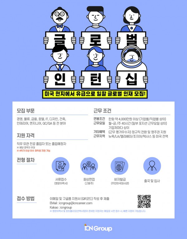 [채용] (ICN Group) 미국 현지 우수 기업 인턴십 안내 (8월 5주차)