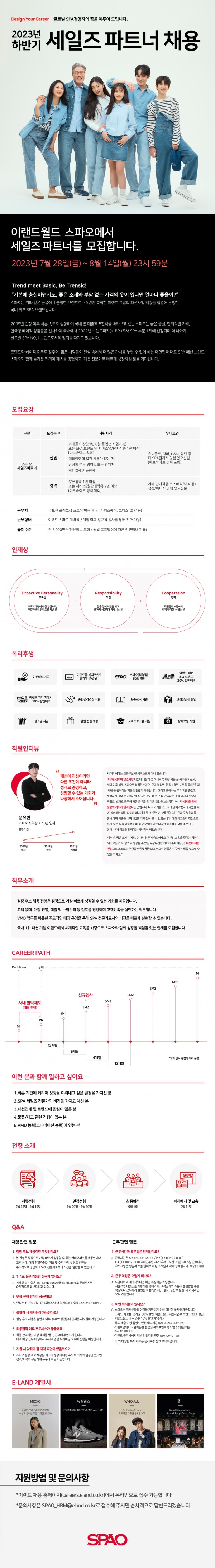 [채용] (이랜드 월드패션) 2023년 하반기 스파오 세일즈 파트너 채용 안내