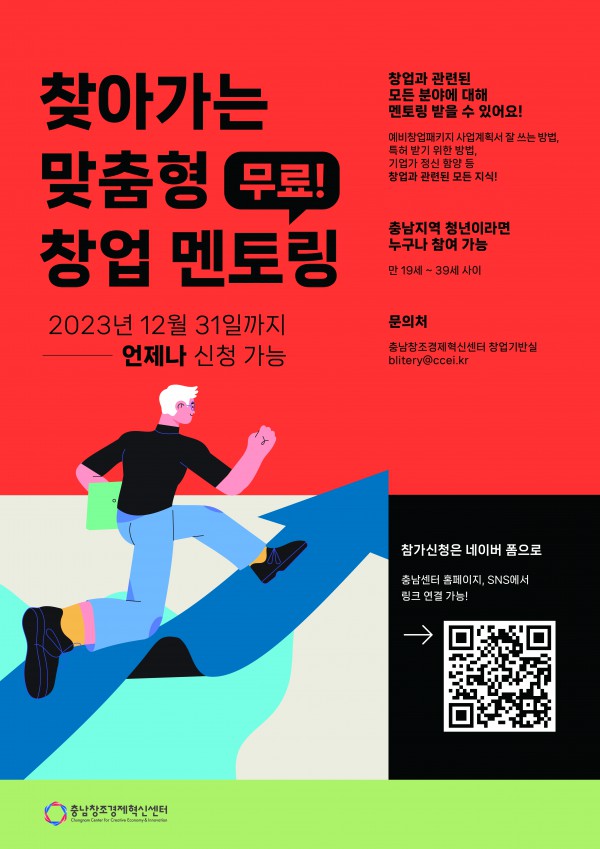 [홍보] (충남지역 청년) (충남창조경제혁신센터) 찾아가는 맞춤형 무료 창업 멘토링 안내