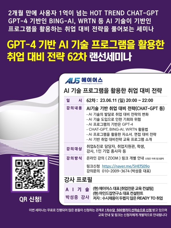 62차 : AI기술 기반 취업 대비 전략(CHAT-GPT 등)