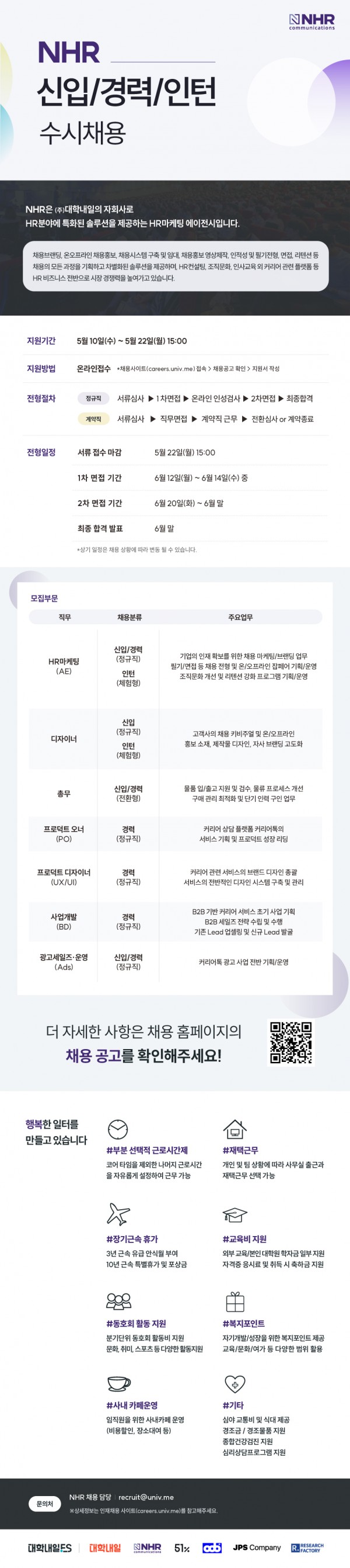 [채용] (NHR) HR 마케팅, 디자이너 등 신입/경력/인턴 채용